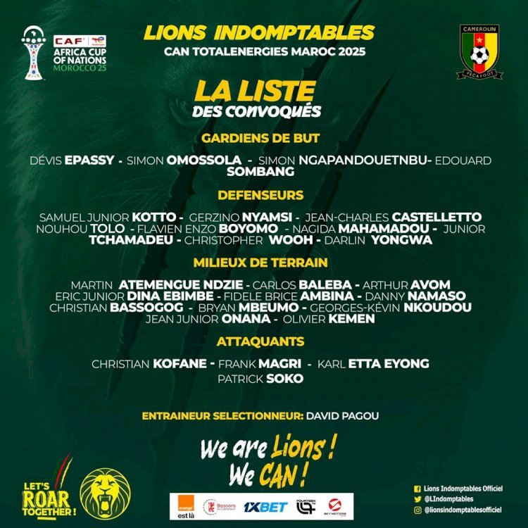 Le nouveau sélectionneur des lions Indomptables Cameroun David Pagou, a rendu public lors d'un point de presse tenu ce premier jour de décembre, une liste élargie de 28 joueurs, marquée par de nombreuses absences majeures. Privés de plusieurs cadres, les Lions Indomptables se présentent avec un groupe rajeuni, ponctué par des retours importants et plusieurs premières convocations.