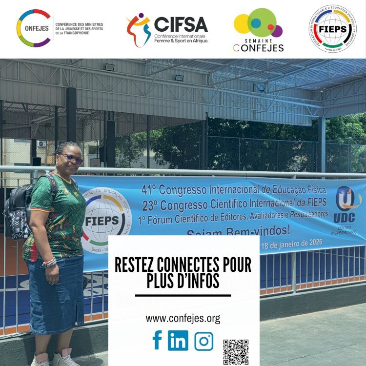 La patrons de la CONFEJES, Mme Louisette-Renée Thobi, séjourne au Brésil dans le cadre de sa participation au 41ᵉ Congrès international de l’Éducation Physique et à la 5ᵉ Rencontre mondiale des Femmes de la FIEPS, un rendez-vous stratégique pour la coopération internationale et le leadership féminin dans le sport.